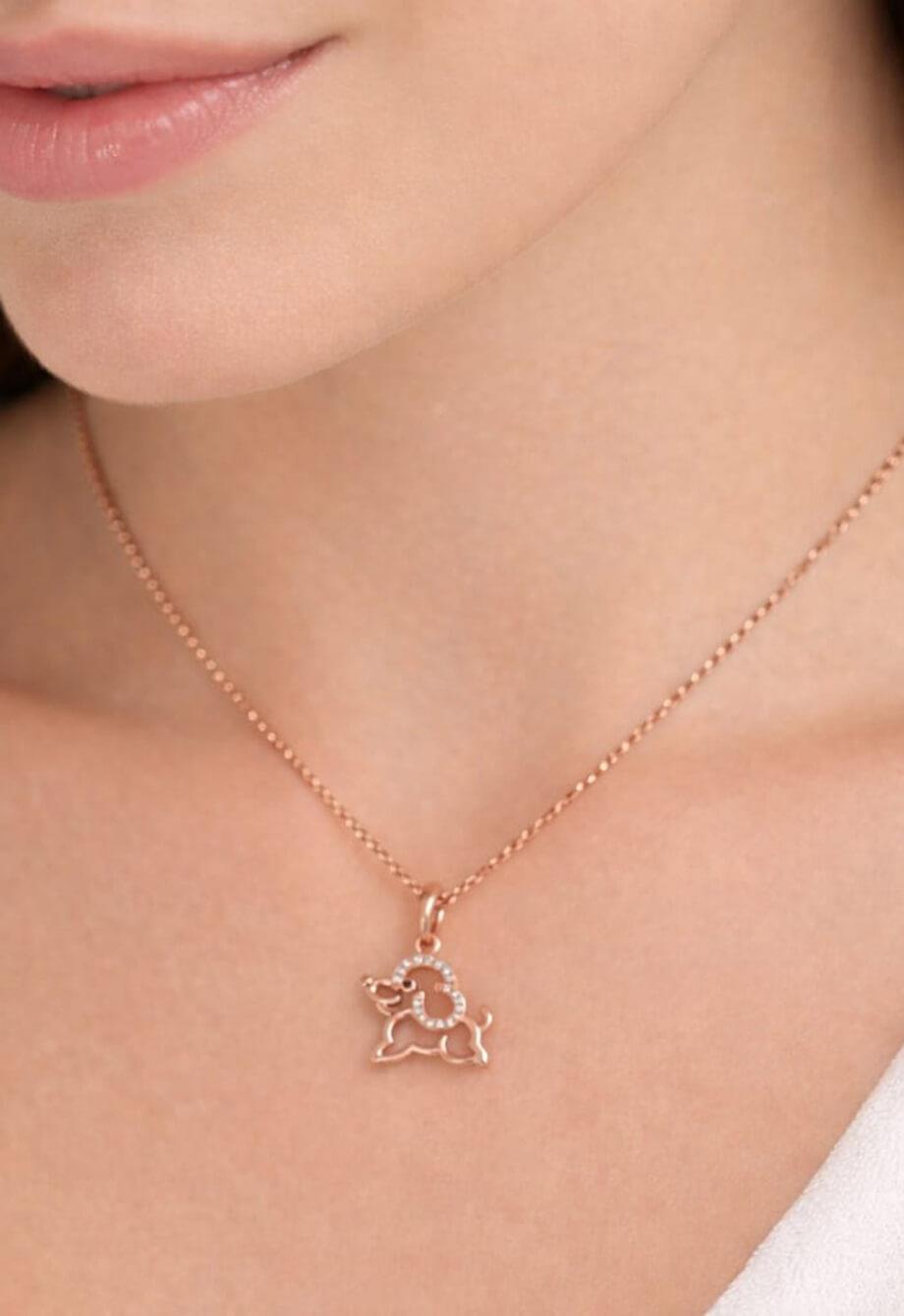 Rose Renkli Zirkon Taşlı Köpek Gümüş Kolye