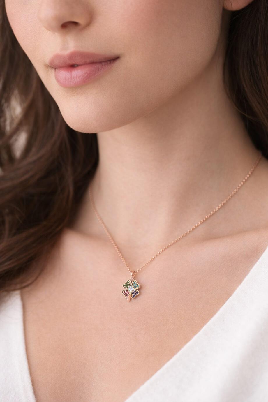 Rose Renkli Yonca Gümüş Kolye